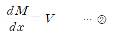 전단력 V와 굽힘모멘트 M의 관계는 다음과 같습니다.
