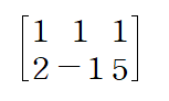 주어진 선형방정식계로부터 첨가행렬(augmented matrix)을 세우면 다음과 같습니다