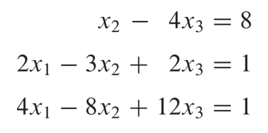 [0 , , , 0 b] (b ≠ 0) 인 row가 있으면 선형방정식계가 inconsistent, 즉 해를 갖지 않는다.