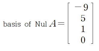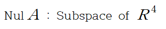 따라서 기저는 다음과 같고 Nul A는 R4의 부분공간입니다