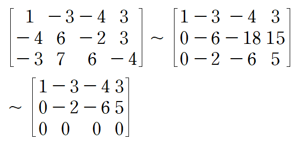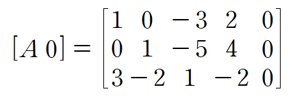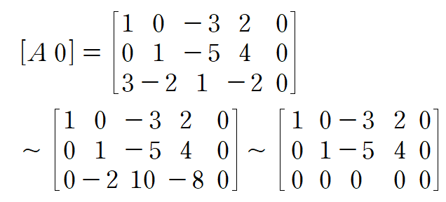 (예제 3) 행렬 A의 영공간을 이루는 기저를 구하여라