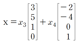 일반해를 열벡터 x로 표현하면 다음과 같습니다