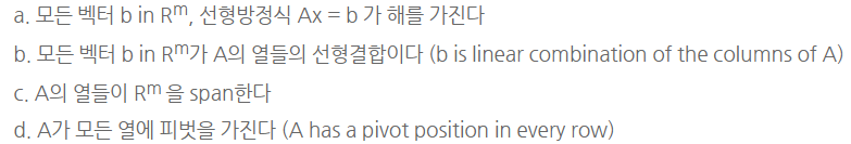 m x n 행렬 A에 대해, 다음 명제들은 논리적으로 동치입니다