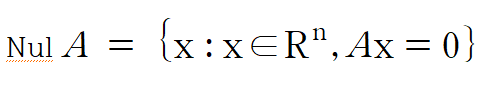 Column space of A (이하 Col A)는 행렬 A의 열벡터들을 span한 subspace, Null space of A (이하 Nul A)는 행렬 A에 대해 Ax=0 라는 선형방정식의 해집합입니다