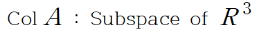 또한 m x n 행렬 A의 Column space는 Rm의 부분공간입니다(행의 개수 m을 따라감)