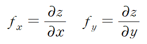 다음의 z=f(x,y) 이변수함수에 대해 편도함수의 표현들은 아래와 같습니다