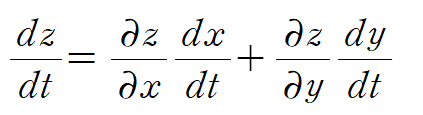 이때 t에 대한 z의 미분은 다음과 같습니다