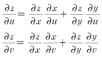x=x(u,v), y=y(u,v)라면 연쇄법칙에 의해 다음이 성립합니다