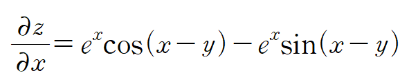 y에 대한 z의 편미분은 다음과 같습니다. ex를 상수취급해야 하니, 곱의 미분법을 적용할 필요는 없습니다