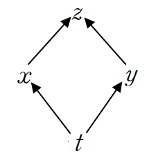 u -> z로 갈 때 거쳐가는 변수는 x, y입니다. 연쇄법칙을 이용해 표현하면 다음과 같습니다