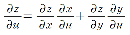 연쇄법칙을 적용하면 u에 대한 z의 편미분은 위 식과 같습니다