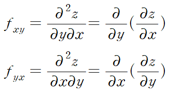 fxy, fyx 가 모두 연속이면 아래 두 편도함수는 같습니다 (fxy = fyx , 클레로 정리)