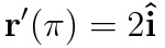 양변에 t=π를 대입해주면 r'(π)가 x축의 양의방향으로 2의 크기를 가지는 벡터임을 알 수 있습니다.