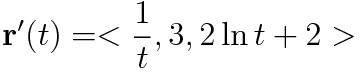 (예제 3) 주어진 r(t)에 대해 t=π 일 때 r'(t)를 구하여라