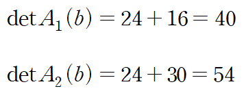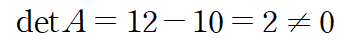 det A가 0이 아니므로 A는 가역행렬입니다. 따라서 크래머 공식을 사용할 수 있습니다