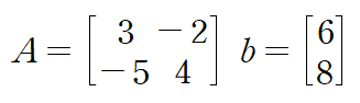크래머 공식을 사용하기 위해 연립방정식으로부터 A와 열벡터 b를 설정하고
