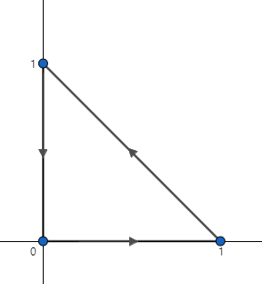 (예제 1) 선적분을 계산하여라. C는 (0,0), (1,0), (0,1)을 잇는 삼각형이며, 양의 방향이다.