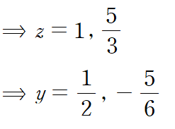 z를 구하면 아래와 같고 각각의 z에 대응하는 y도 구할 수 있습니다.