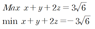 따라서 x+y+2z 의 최대, 최소는 다음과 같습니다.