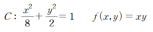 (예제 1) 타원 C 상에서 f(x,y)의 최대, 최소를 구하여라