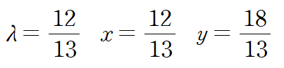 임계점에서 목적함수의 함숫값은 아래와 같습니다.