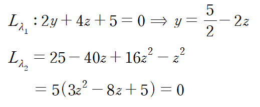 곡선을 직접 구해서 하나의 제약조건으로 만들어도 되고, 두 개의 제약조건을 사용해도 좋습니다. 저는 두 개의 제약조건으로 취급하였는데 하나의 제약조건으로 만들 때는 y = 2.5-2z 를 G에 대입하면 됩니다.