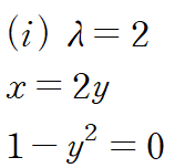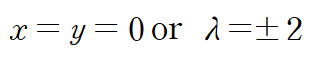 해를 구하면 x와 y 모두 0이거나 λ=±2 입니다.