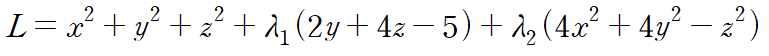 함수 L을 설정합니다. 이때 각각 다른 라그랑주 승수를 사용해 표현합니다.