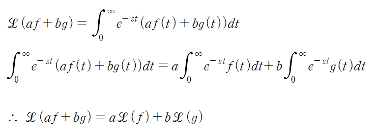 이에 더해 라플라스 변환이 가지고 있는 매우 중요한 성질, 선형성 또한 유도해보자