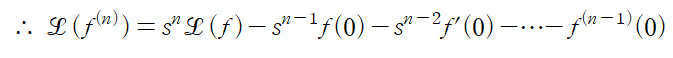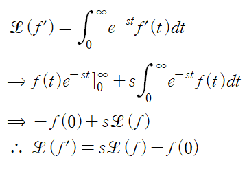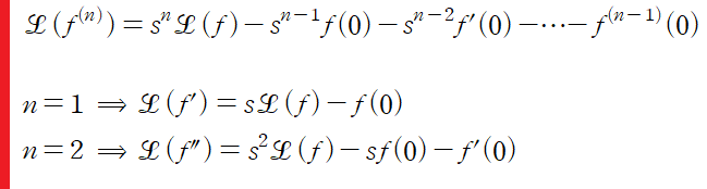미분방정식은 함수f의 도함수가 포함되어있는 방정식이다. 따라서 미분방정식을 라플라스 변환을 통해 풀 때 도함수에 대한 라플라스 변환을 수행하는 것은 필수적이다. 추가적으로 적분에 대한 공식 또한 미분공식의 유도과정과 같은 방식으로 유도할 수 있다