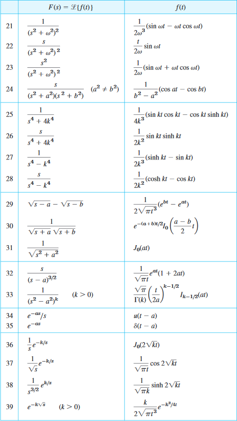 라플라스 변환표erwin kreyszig 의 advanced engineering mathematics 10th edition