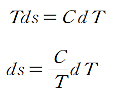 비열을 상수라 가정하고 적분하면 비열과 온도로 표현된 엔트로피를 얻을 수 있습니다.