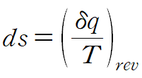 가역과정(reversible process)에서 엔트로피 방정식은 다음과 같습니다.